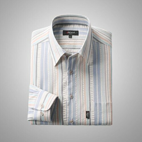 Pierucci/ピエルッチ サッカー生地ロールアップ長袖シャツ2色組 (カラータイプ) 凹凸のあるサッカー生地で肌触りも爽やか。