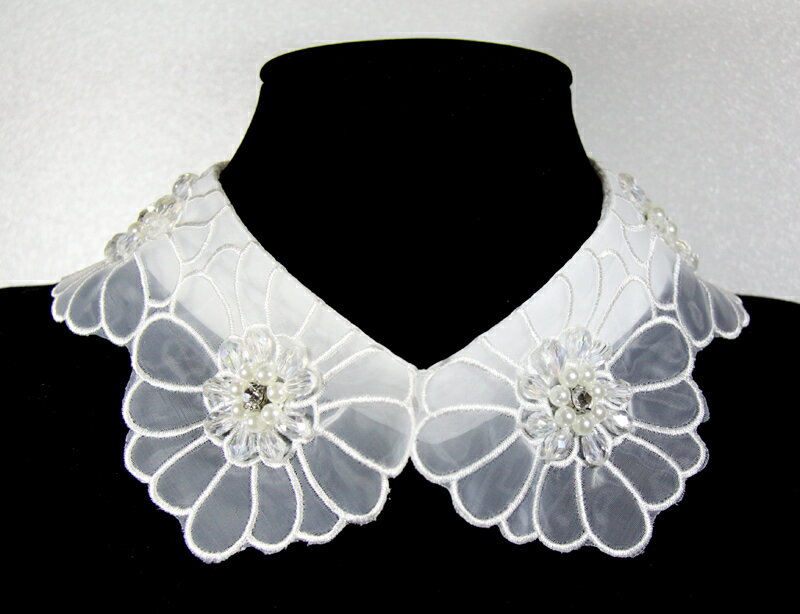 ラインストーン 花モチーフの オーガンジー つけ襟付け襟 つけ衿 付け衿